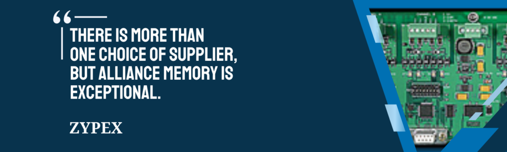 “Alliance Memory has been exceptional in their customer service and in delivering product when and where we needed it” says Del Peck, Jr., ZYPEX President and Founder.